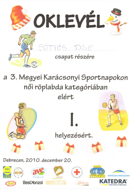 Leány ifjúsági csapatunk hat debreceni középiskola együttese előtt megnyerte a 3. Megyei Karácsonyi Sportnap női röplabda küzdelmeit.