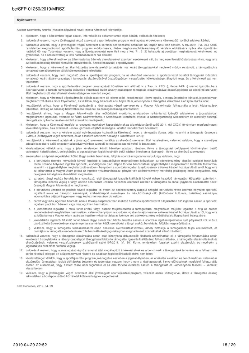 2019. évi sportágfejlesztési program