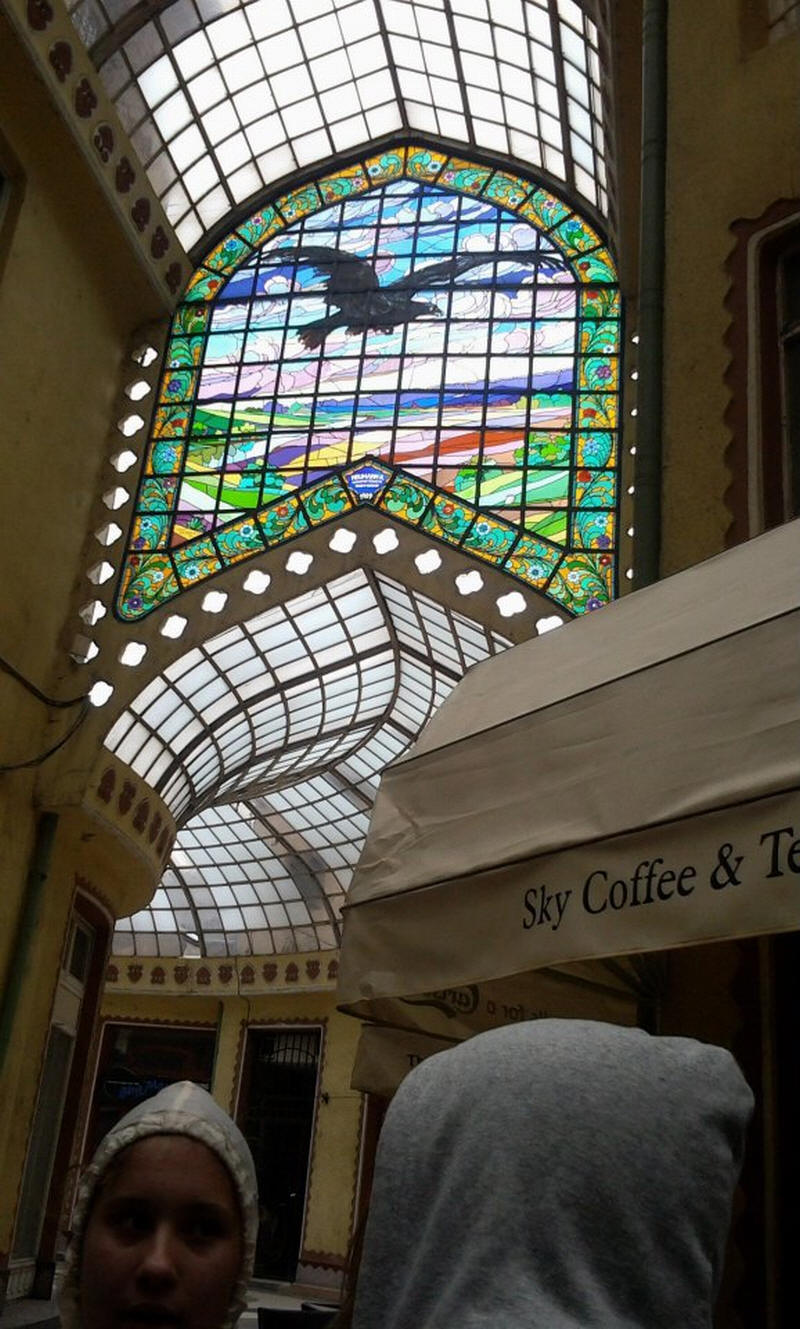 A nagyváradi városnézést ezúttal is Lukács Sándor vezette. A képen a Fekete Sas Palota bejárata.