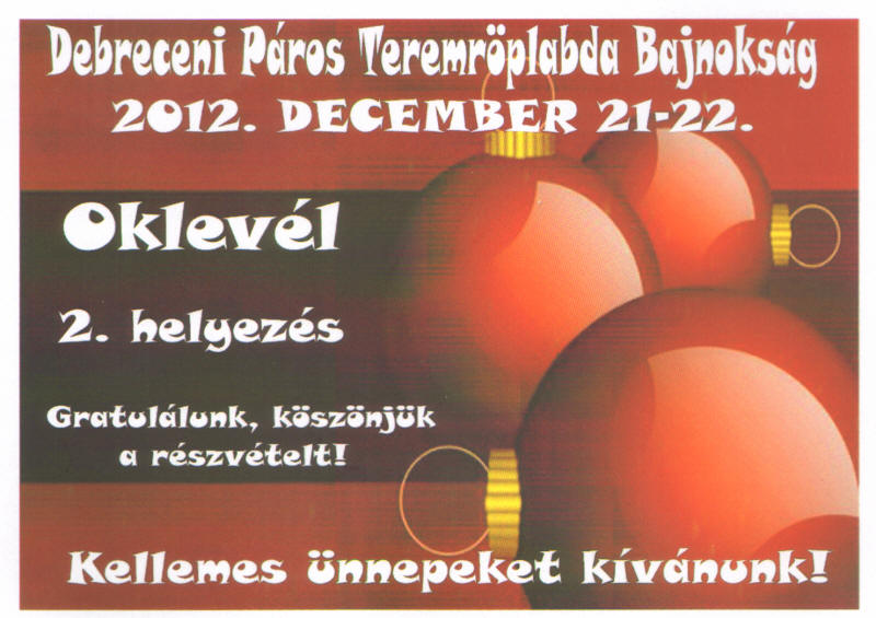 A 2012. december 21-én és 22-én  szervezett versenyen a vegyes párosoknál 12 csapat, a női párosoknál 10 gárda, míg a férfiaknál 12 páros játszott.