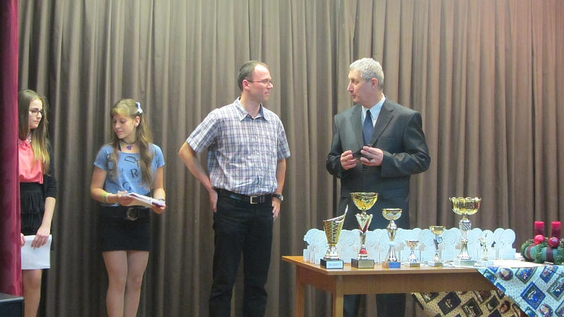 Szombathy András titkár köszönő plakettet ad át Orbán Attilának, a szenior csapat szakosztályvezetőjének.