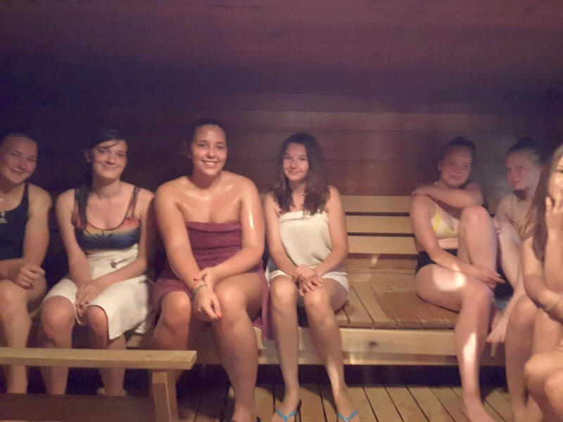 A versenynap után a jól megérdemelt szaunázás a finn lányokkal.