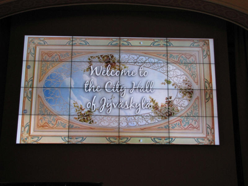 Csoportkép Debrecen finnországi testvérvárosának városházában.