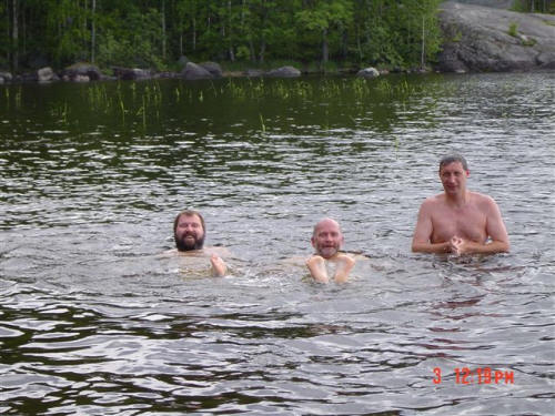Szauna után hideg vízben Ignáth József, Hynynen Tapani és Szombathy András. In cold water József Ignáth, Hynynen Tapani and Szombathy András are after the sauna. 2004
