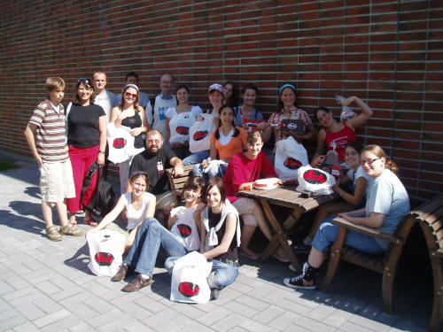 Csoportunk a Panda édességgyár előtt vásárlás után.