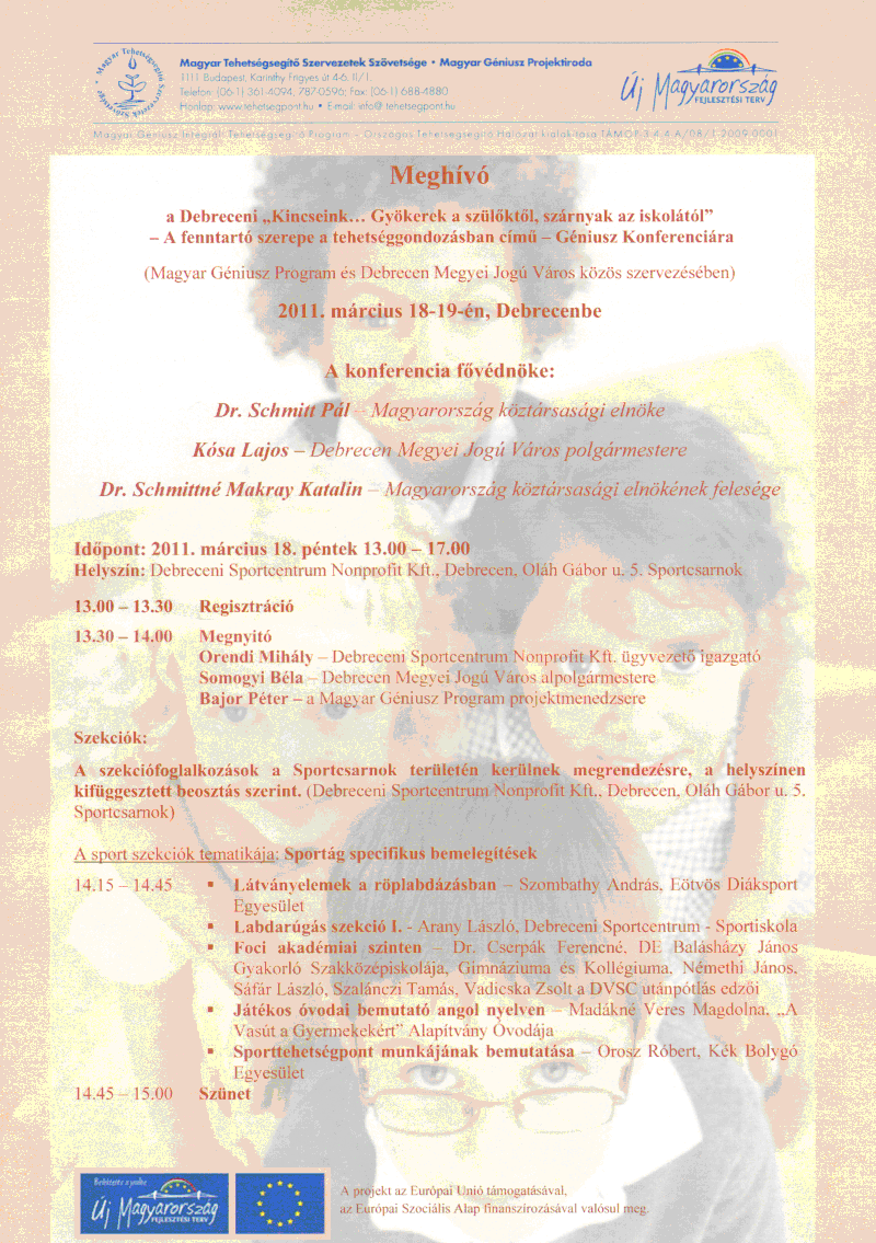 A Debreceni "Kincseink...Gyökerek a szülőktől, szárnyak az iskolától" - A fenntartó szerepe a tehetséggondozásban című Géniusz Konferencián mutatták be "Látványelemek a röplabdázásban" című produkciójukat egyesületünk szupermini- mini-, gyermek és serdülő korosztályú játékosai 2011. március 18-án.