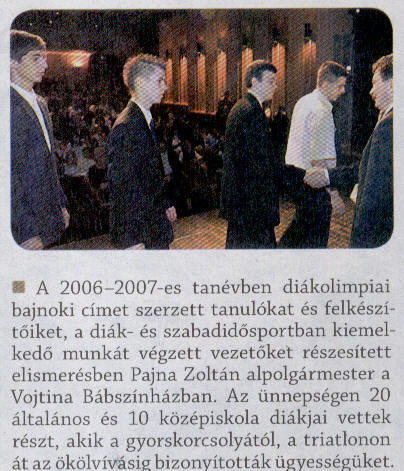 2007. decemberében diákolimpiai bajnokcsapatunkat jutalmazták a Vojtina Bábszínházban.