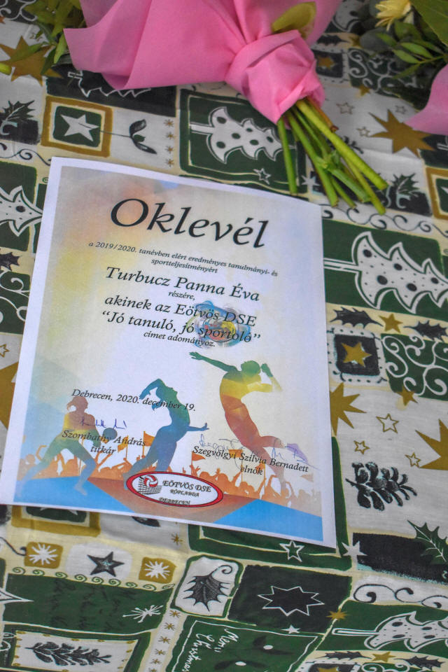 2020. december 18-án egyesületünk egyik bázisiskolája, a Debreceni Vörösmarty Mihály Általános Iskola és AMI előtt kapták meg a 2019/2020. tanévben elért teljesítményéért "Az Eötvös DSE jó tanulója - Jó sportolója" címért járó okleveleket és ajándékokat játékosaink: