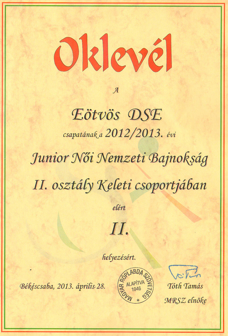 2013/2014: A tavalyihoz hasonló szép sikert ért el az NB II keleti csoportjában szereplő junior együttesünk, ismét ezüstérmesek lettünk. Szép volt lányok!