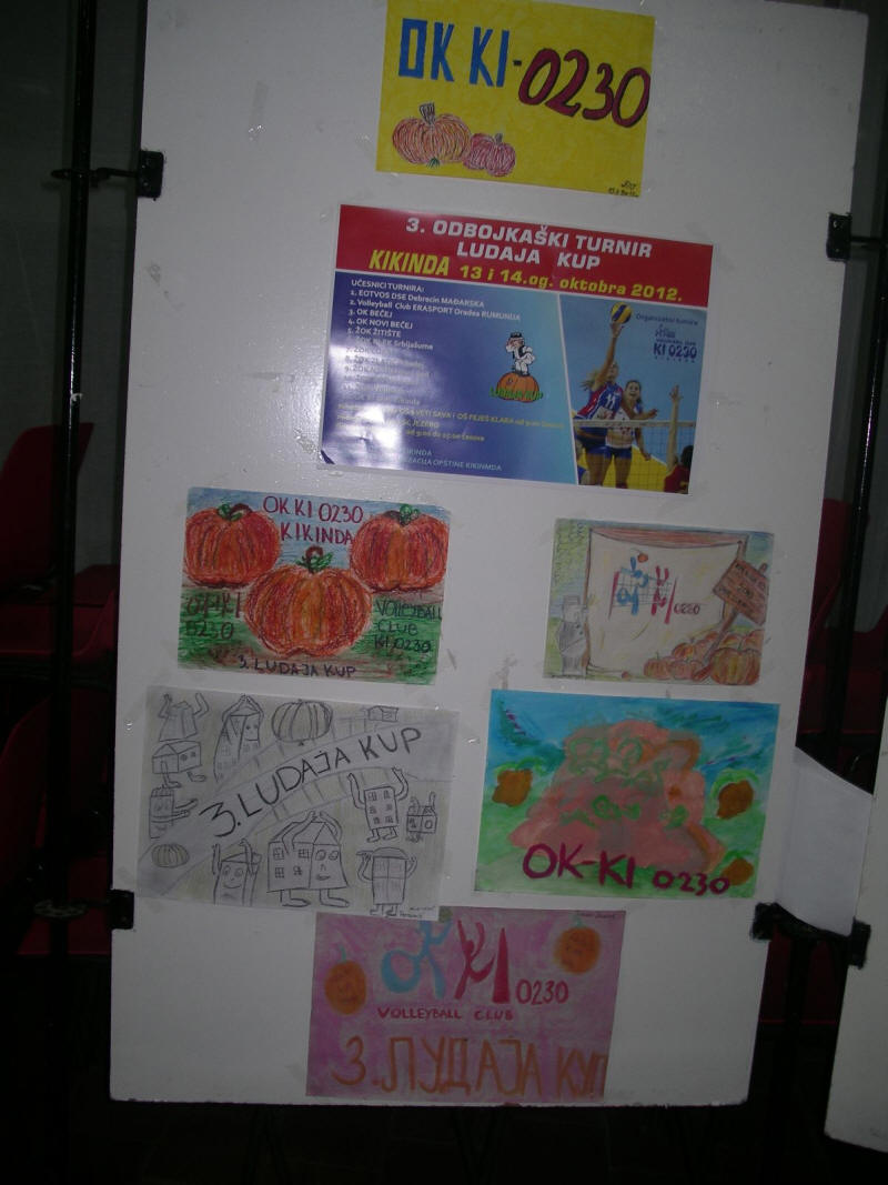 A rajzokból és poszterből álló figyelemfelkeltő paraván.
