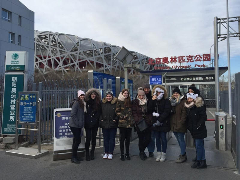 Team picture in front of the Beijing National (Olimpical) Stadium, also known as the Bird's Nest. The temperature was very cold. -10°C.