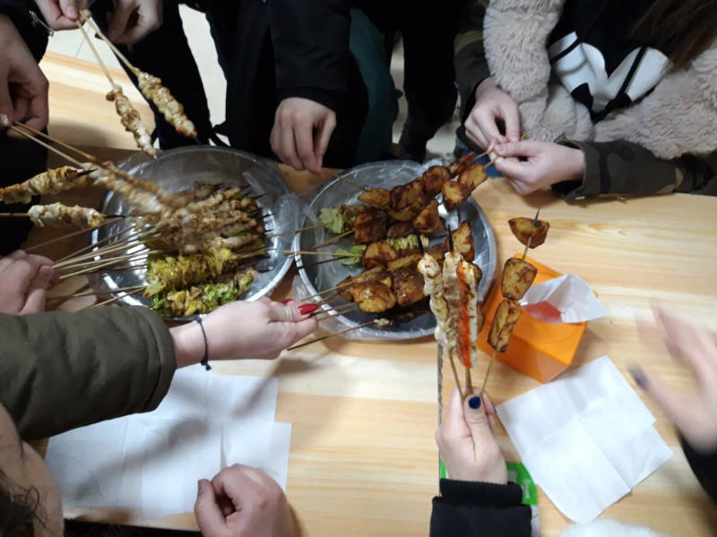 Players had meats, mushrooms, potatoes, vegetables baked in skewer for dinner.