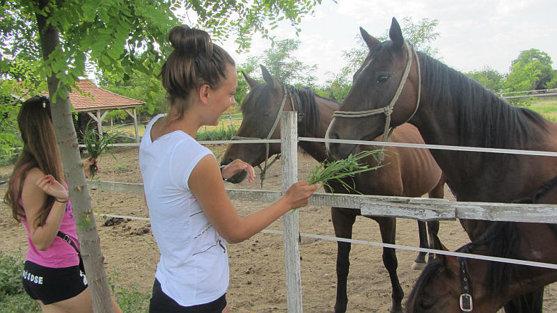 Ellátogattunk a Furioso lovardába is, ahol az élőket etették, a falovakat megülték a lányok.