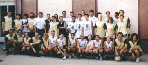 Együtt a női felnőtt, a leány junior. a fiú junior és a szenior csapat 2003. júniusában.