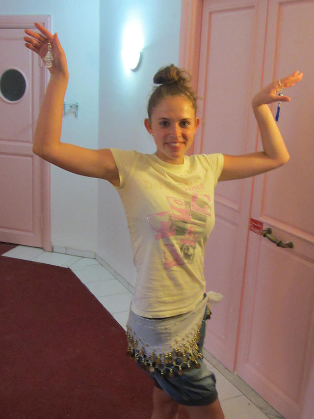 A Medinában vásároltakba beöltözve...