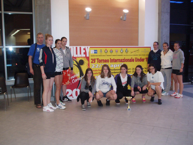 A 15. helyezett csapat a torna egyik plakátja előtt.