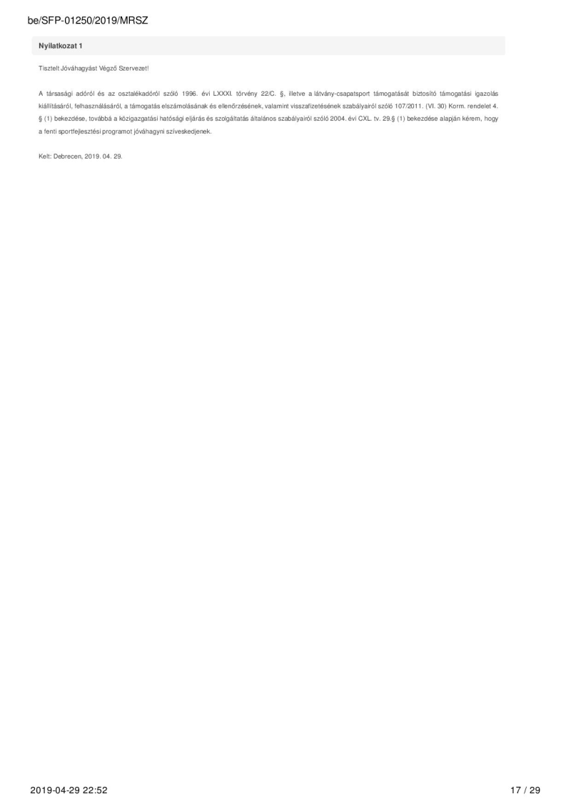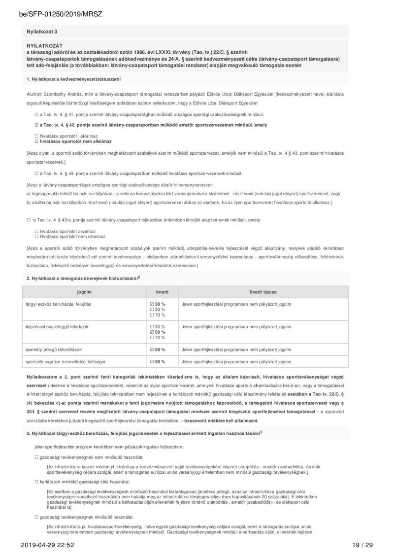 2019. évi sportágfejlesztési program
