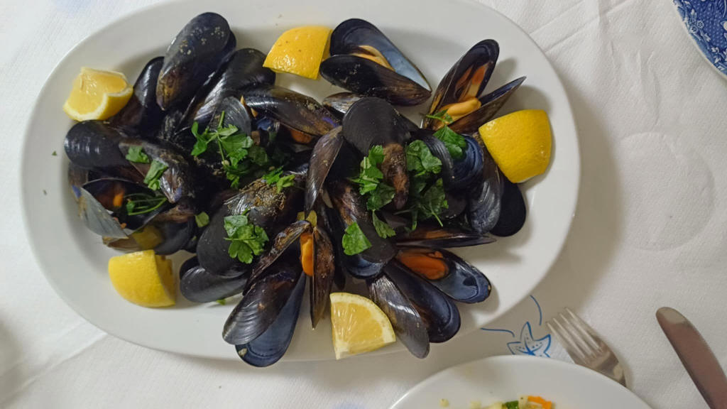 Makrygialos a tengeri kékkagyló tenyésztéséről is híres. Többféle módon is elkészítették nekünk és többféle módon is találkozhattunk velük.