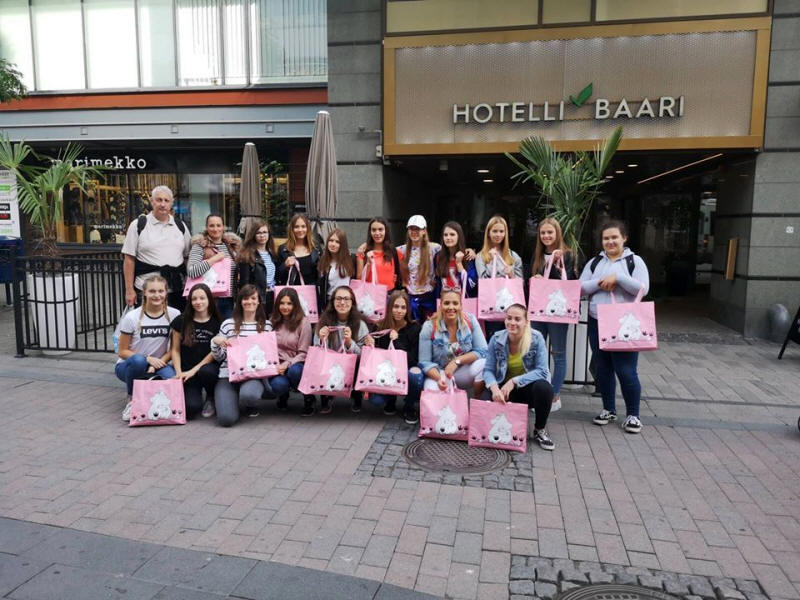 A visszaindulás előtti csoportkép a Hotel Verso előtt a vendéglátóinktól kapott ajándékcsomagokkal.