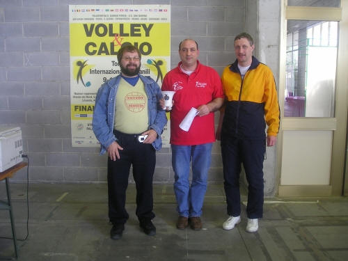 Balról jobbra: Ignáth József az Eötvös DSE fő támogatója, Tiziano Cornacchia a torna főszervezője, és Szombathy András az Eötvös DSE röplabda szakágvezetője.