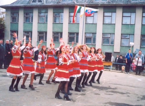 A megnyitó ünnepségen helyi népviseletben a táncosok.
