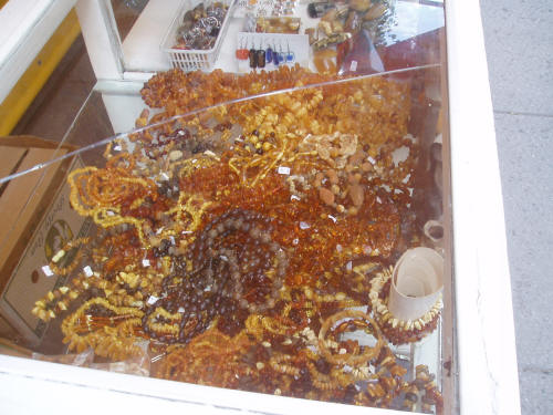 Every kind of ambers in the shop-case of a vendor in Kaunas.