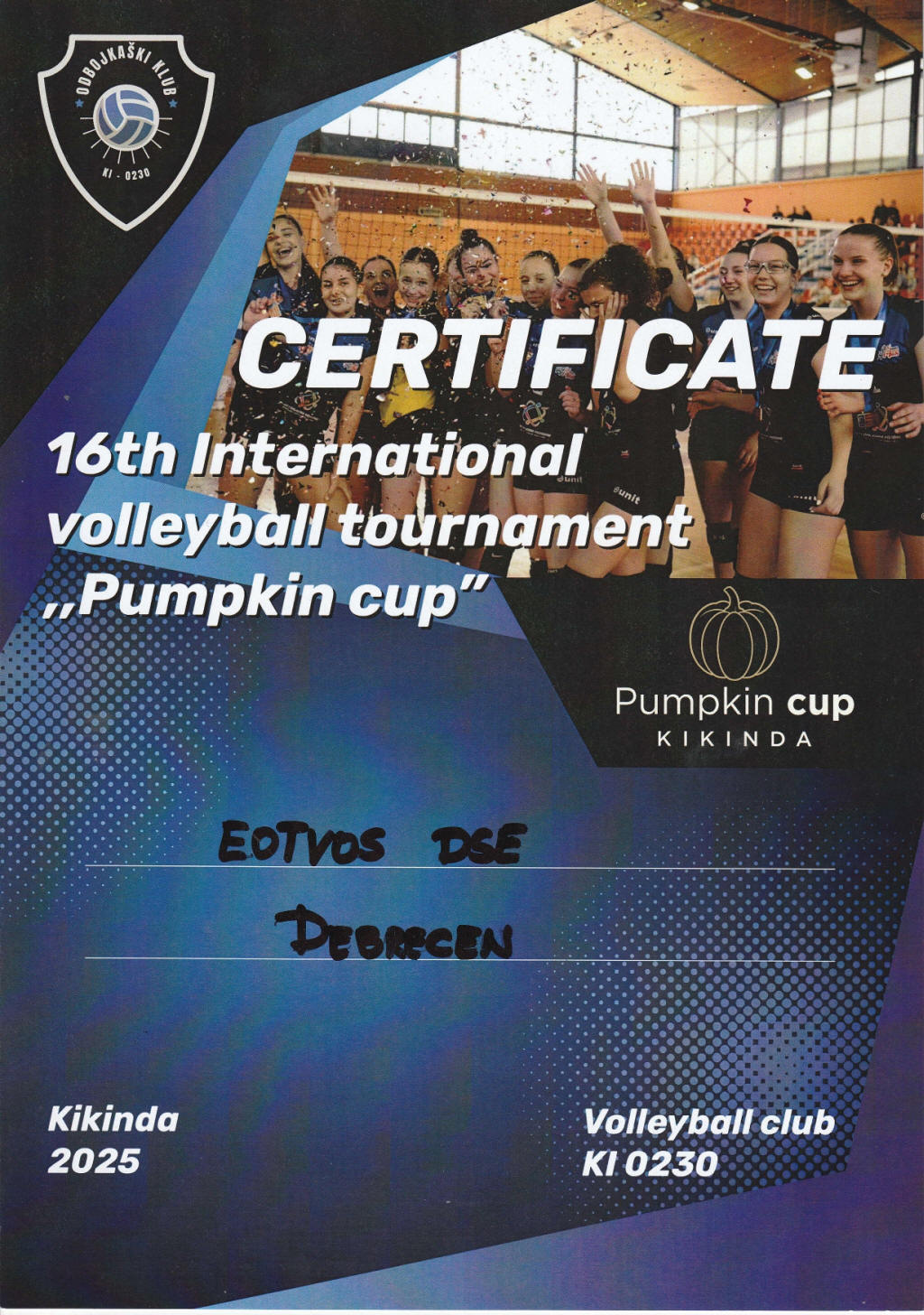 2025. szeptemberében ismét nemzetközi röplabdatornán veszünk részt Kikindán.