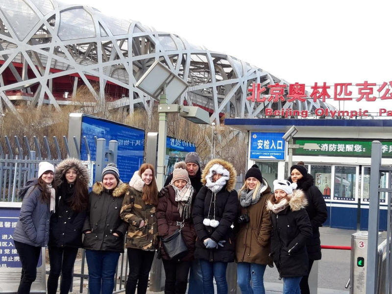Team picture in front of the Beijing National (Olimpical) Stadium, also known as the Bird's Nest. The temperature was very cold. -10°C.