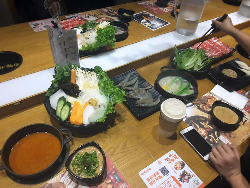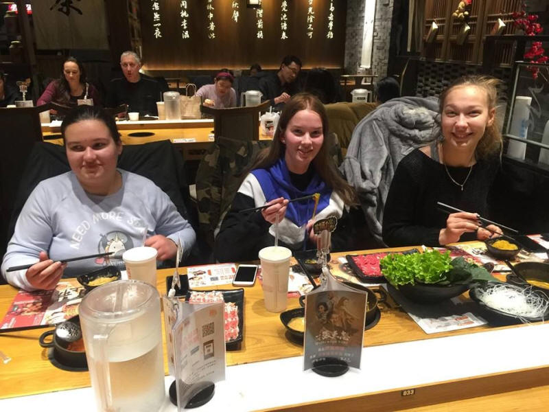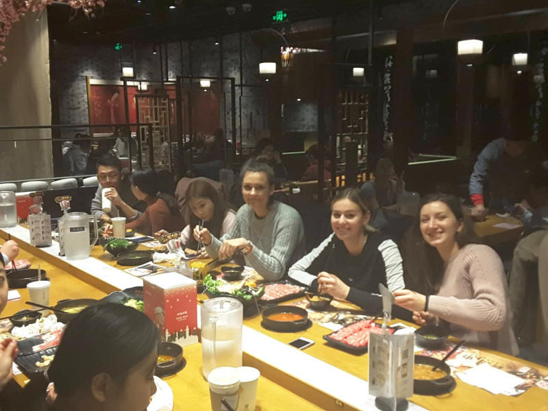 We arrived to Tianjin in the evening. We were in a special restaurant for dinner. We had to choose a basic soup, then we can choose raw vegetables, meat, fish, crab. We put them to the soup which was boiled in front of us, then using our chopstics to eat them.