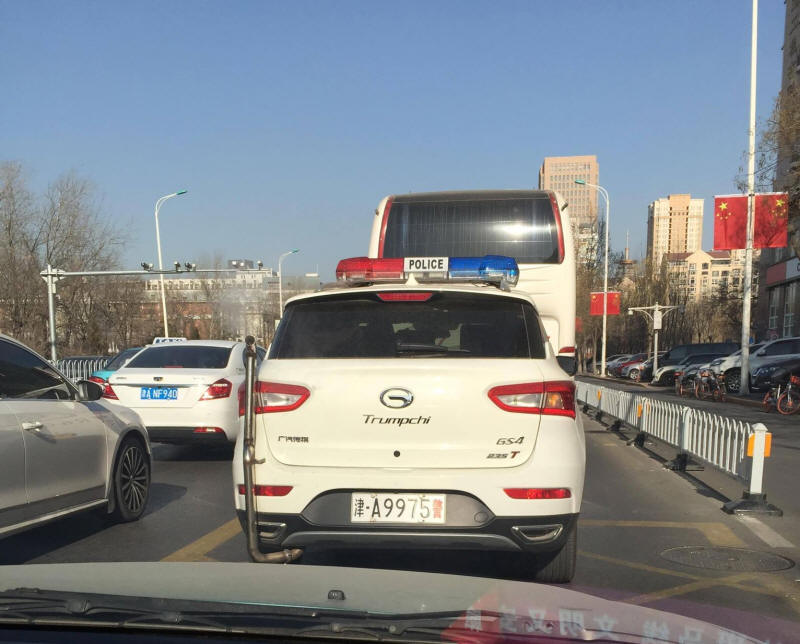 On 30th December we went to the old town part of Tianjin with 3 cars. This photo shows how can police cars go in high water level.