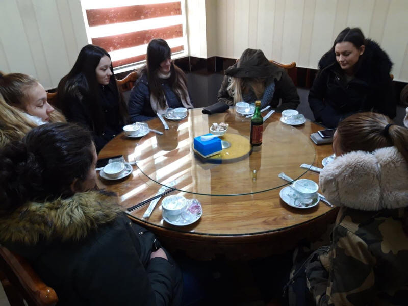 Our tour to another University we stopped in an authentic restaurant to have our lunch. The girls didn't like the smoke and the cold temperature.