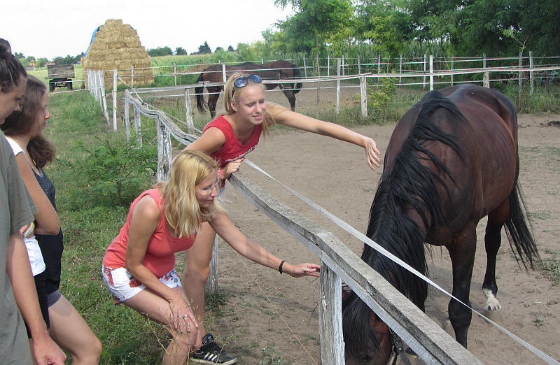 Ellátogattunk a Furioso lovardába is, ahol az élőket etették, a falovakat megülték a lányok.
