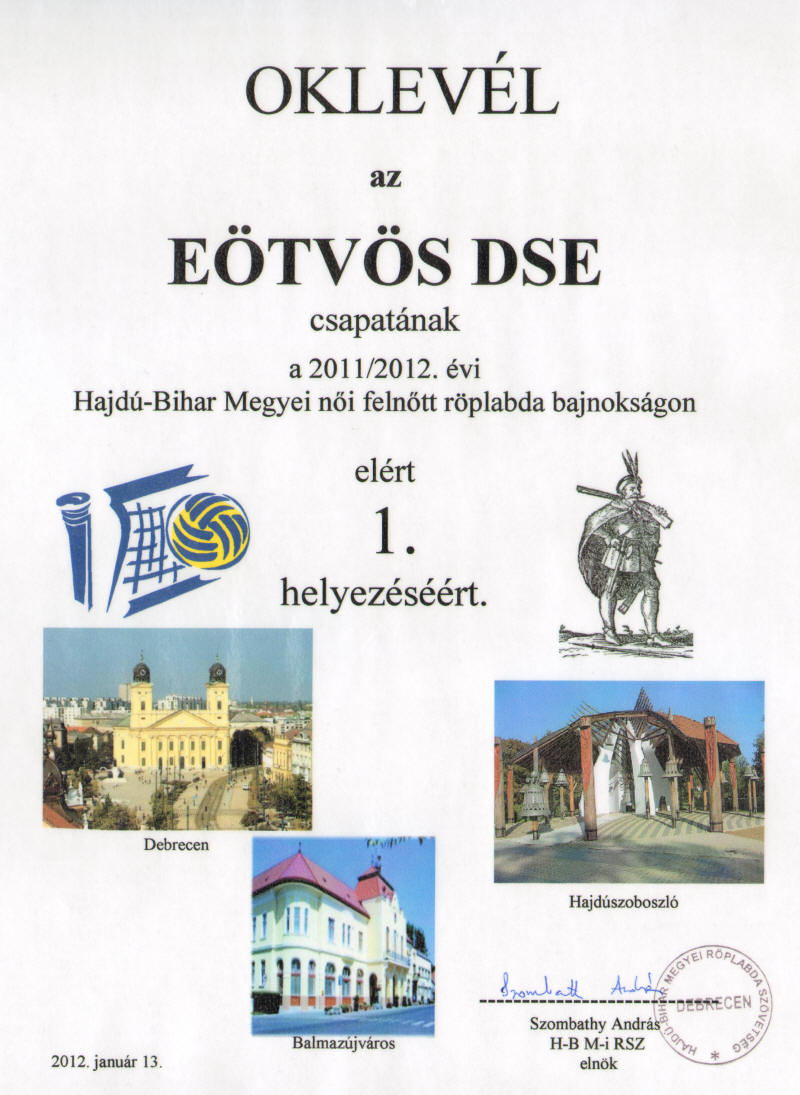 Ismét a női és a férfi bajnokságban is indítottunk csapatokat az előző négy bajnoki évhez hasonlóan. A szenior csapatunk a megyei férfi bajnokságban szerepel, az ő eredményeik a szenior csapat linken és a Hajdú-Bihar Megyei Röplabda Szövetség honlapján láthatók. A 2011/2012-es női bajnokságban a versenykiírás értelmében azok a játékosaink nem szerepelhettek, akik a tavalyi vagy az idei bajnokságban NB I-ben vagy NB II-ben pályára léptek.