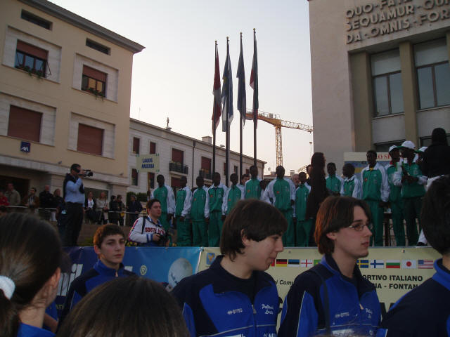 The national footballer team of Nigeria is on the stage.