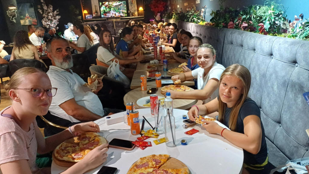 In 2025, on our way home from the training camp in Greece, we stopped in the capital of Kosovo. After a short sightseeing tour, we played a match with the KV Prishtina Elite team in the same hall where the U16 Girls' European Championship was held two days later. (In 2012, Fadil Lumi, the then president of the Kosovo Volleyball Federation, personally visited the Kosovo girls' and boys' youth national teams at the Eötvös Cup, which is where the familiarity came from.) We were treated to a delicious dinner courtesy of our host, Kastriot Azemi, and left with nice medals and a cup.