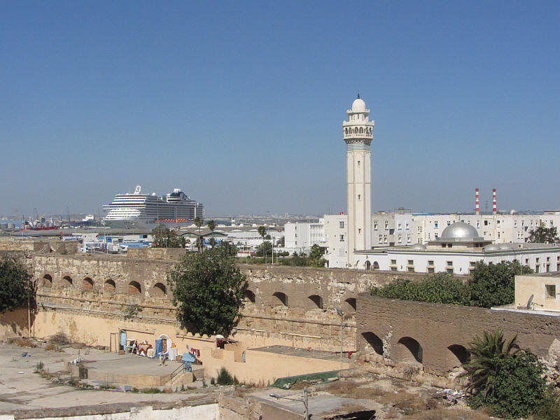 A szálloda másik oldali szobáiból a börtönre, a minaretre illetve a tengeren lévő hajókra nyílt kilátás.