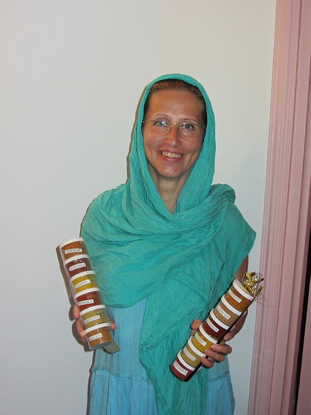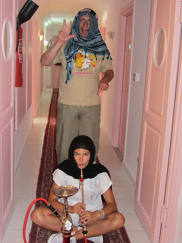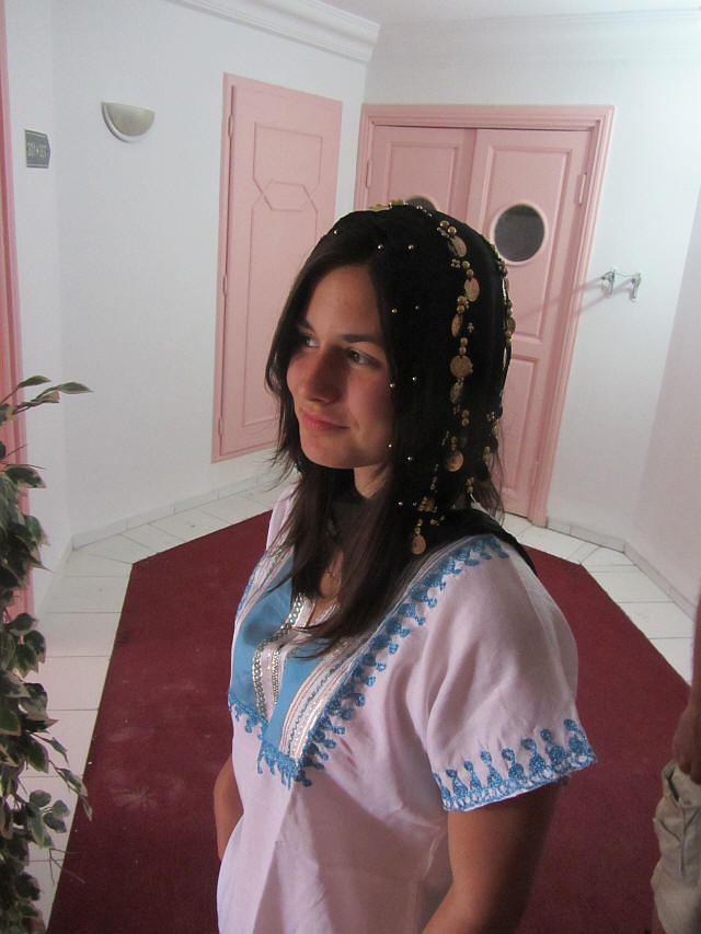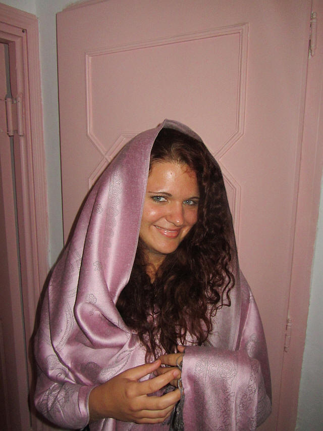 A Medinában vásároltakba beöltözve...